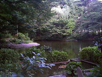 交差点を右折して「紀尾井町本通り」へと入りますと、 「清水谷」という案内柱が目に入りました。(写真左上) 坂が多くあって確かに谷なのだと実感できますね。 そんな訳で通りを歩いて行きますと左手には、 こちら「区立清水谷公園」に到着しました。(写真右上) 江戸時代の徳川紀伊家と井伊家の隣接していた所で、 昔は湧水が多くあって池が出来たとの事です。 現在は湧水はなく写っているのも人工物でございます。 という事で園内に入って心字池前で撮影しました。(写真左側) ご覧の通り水と緑に囲まれている美しい公園でして、 これだけ見ていると都内である事を忘れますなぁ。 |