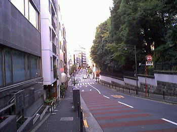日本テレビ通りを市ヶ谷駅方面へ歩き交差点を渡って、 暫く歩いた所にて一枚撮影してみました。(写真左上) 右手は四番町で左手が六番町となっております。 この辺は飲食店が入ったビルが多く建っておりますな。 更に歩いて行きましてこちらの交差点に到着。(写真右上) この先の「新坂」を下りますと市ヶ谷駅に着くのですが、 ここは交差点を左折して「二七通り」へと入りました。 二七通りをてれてれと歩いて行きますと右手には、 こちらの「三年坂」が延びております。(写真右側) 昔は「三念寺坂」という名前だったとの事です。 またこの周辺は「五番町」となっております。 |