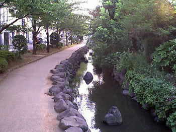 さて「日枝神社」でお参りを済ませた後、 先に登場した「一之江境川親水公園」へと進み、(写真左上) 「陣屋橋」交差点に辿り着きました。(写真右上) 目の前を通る道路は「陣屋橋通り」でございます。 「一之江境川新水公園」はここまでとなっており、 その先はなんと「地下駐車場」になっております。 そのまま真直ぐ歩いて行きまして、 「新渡橋」を渡って行きました。(写真左側) 下を流れるのは「新川」でございます。 川沿いには沿道がありまして、散策するのに持って来い。 「新渡橋」を渡りますと「宇喜田町」に入ります。 |