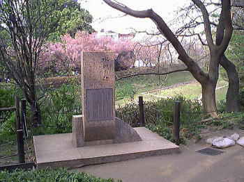 他にも公園内には池があったり(写真左側)、「水田の碑」(写真右側)があります。 もちろん桜の木も多くありまして、やっぱりお花見をしている方が多く見られました。 |